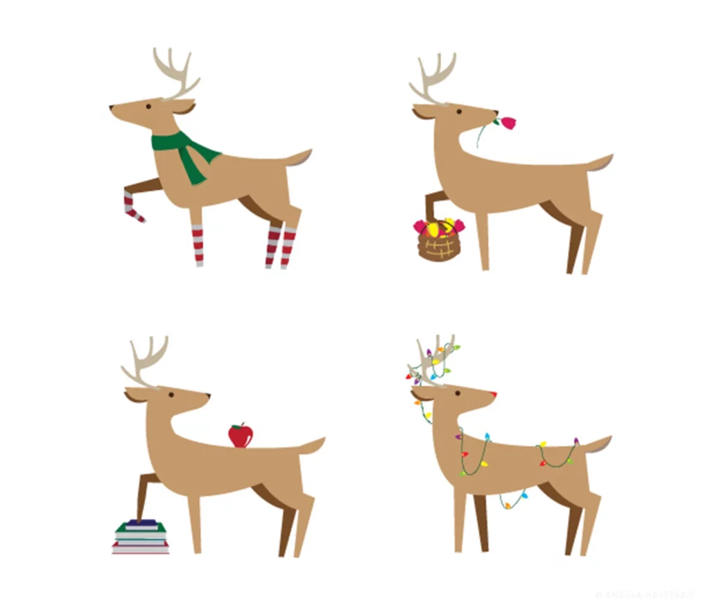 I created this series of vector deer illustrations to be used on various seasonal materials, both print and web.
