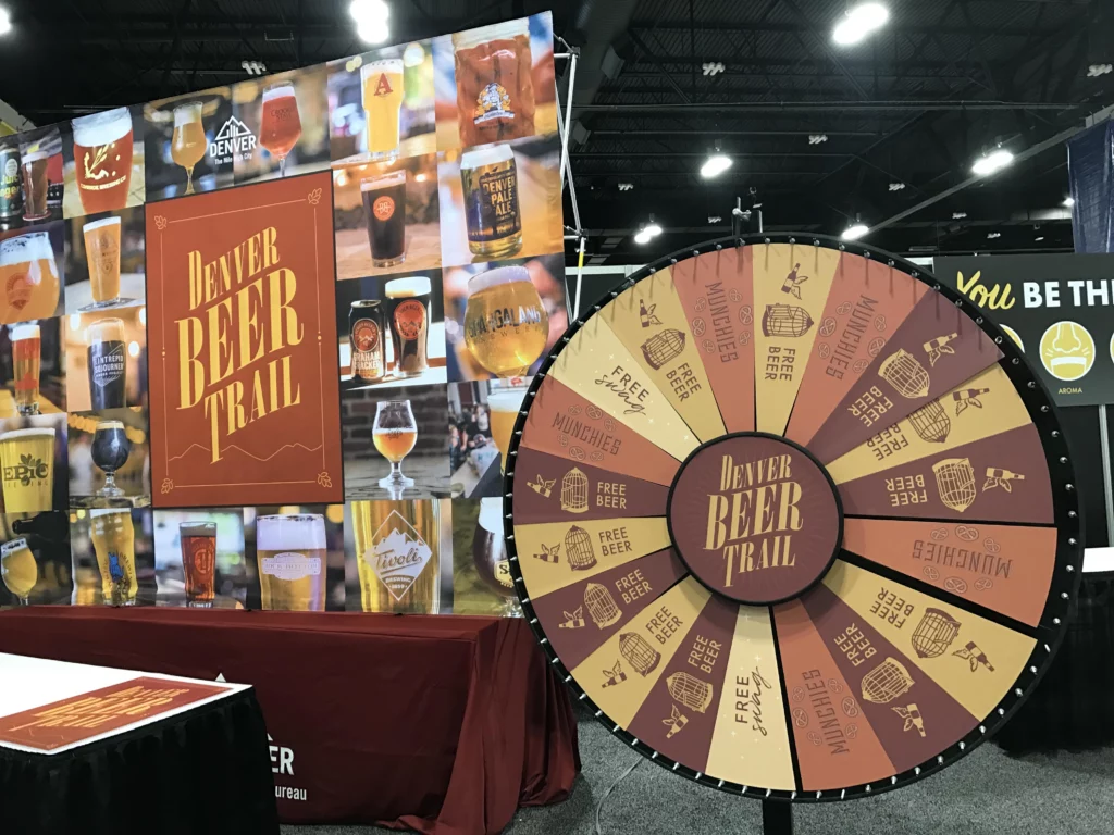 MY ROLEI designed event materials for Denver Beer Fest, including a guide booklet with custom map treatments, signage, swag, and a giant prize wheel.