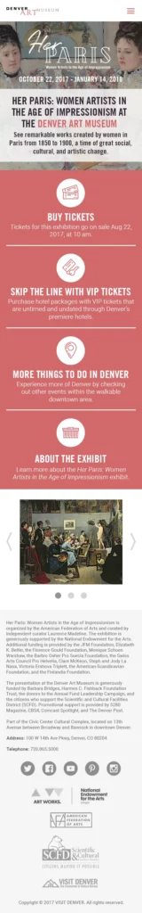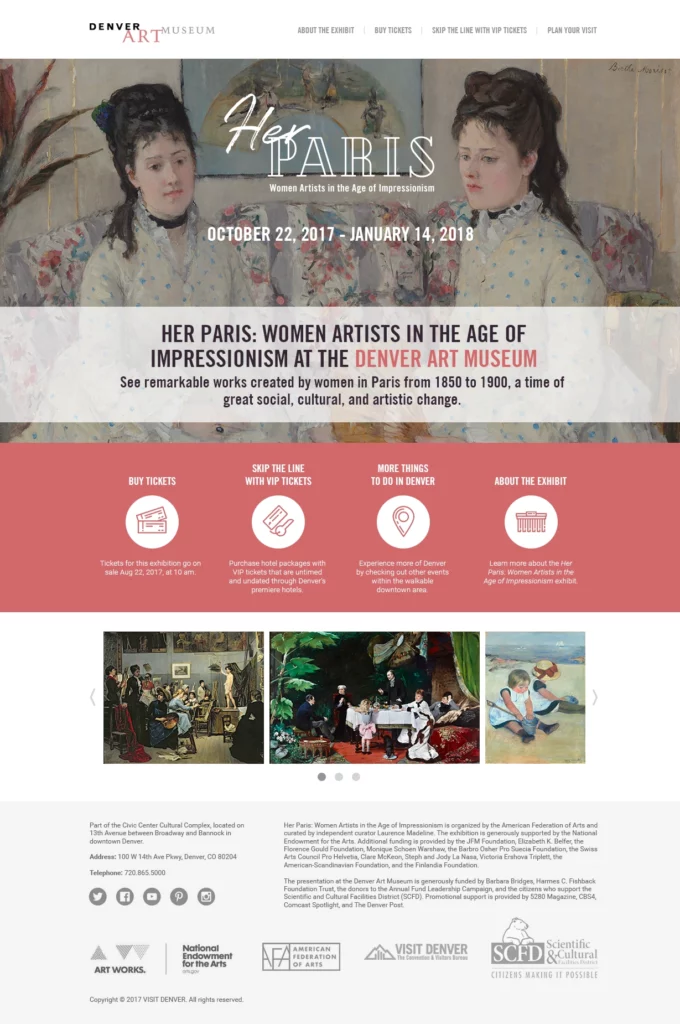 I designed this responsive microsite for the Her Paris: Women Artists in the Age of Impressionism exhibit at Denver Art Museum.
