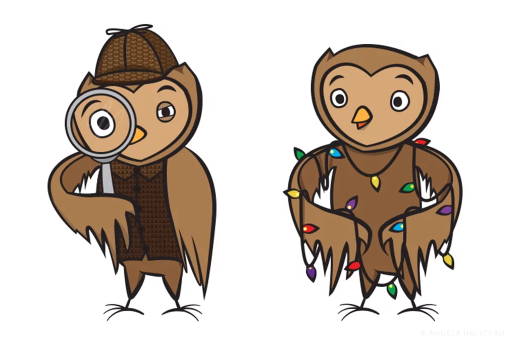 This is Ollie the Owl, a mascot I designed and illustrated for use in seasonal print and web materials.