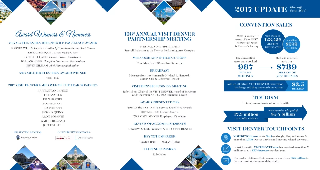 For Visit Denver’s Annual Partnership Meeting, I designed both print and digital invitation materials.
